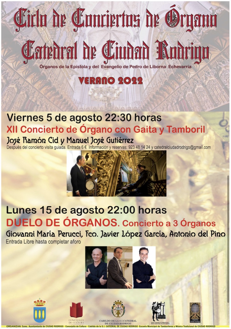 IX Concierto de verano de órgano con gaita y tamboril. Aniversario de los 130 años de la Declaración de la Catedral de Ciuadad Rodrigo como Monumento Nacional (10 de agosto de 1889)